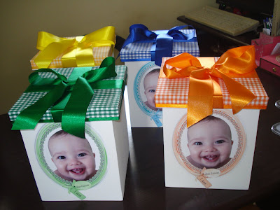 Mas, vou tentar postar algumas peças novas. Estas caixas foram pra o José Gabriel, a festa dele foi dos Backiardigans, por isso estas cores variadas.